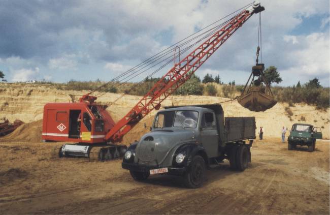 Ein betagter Rundhauber-Kipper (Typ "Sirius" mit 90 PS) aus Hildesheim in der Sandgrube Hänigsen 1999.